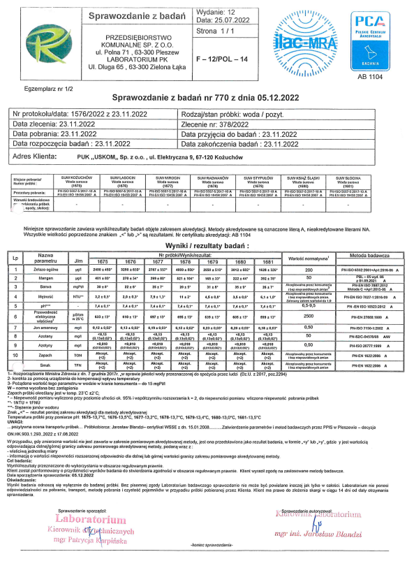 Przedsiębiorstwo Usług Komunalnych „USKOM” Sp. z o.o. ul. Elektryczna 9, 67-120 Kożuchów ogłasza